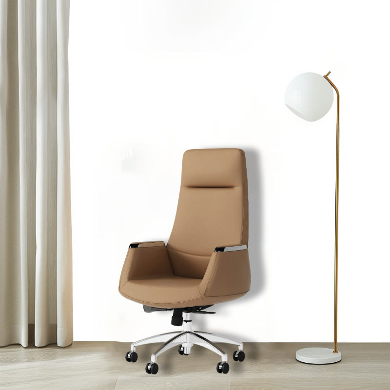 Lu เก้าอี้เก้าอี้ผู้บริหารหนังหลังสูงแบบเรียบง่ายเรียบง่ายตามหลักสรีระป้องกันเอวฐานอลูมิเนียมล็อก3ตำแหน่งสำหรับ
