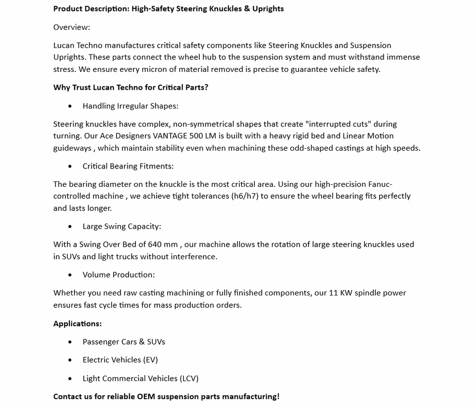 Steering Knuckleความมุ่งหมาย