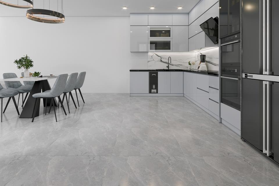 กระเบื้องลายหินอ่อนสีเทาอ่อน LUJO ดีไซน์ทันสมัย ขนาด 600x600 มม. คุณภาพสูงจากเวียดนาม เคลือบเงา ป้องกันแบคทีเรีย กันลื่น