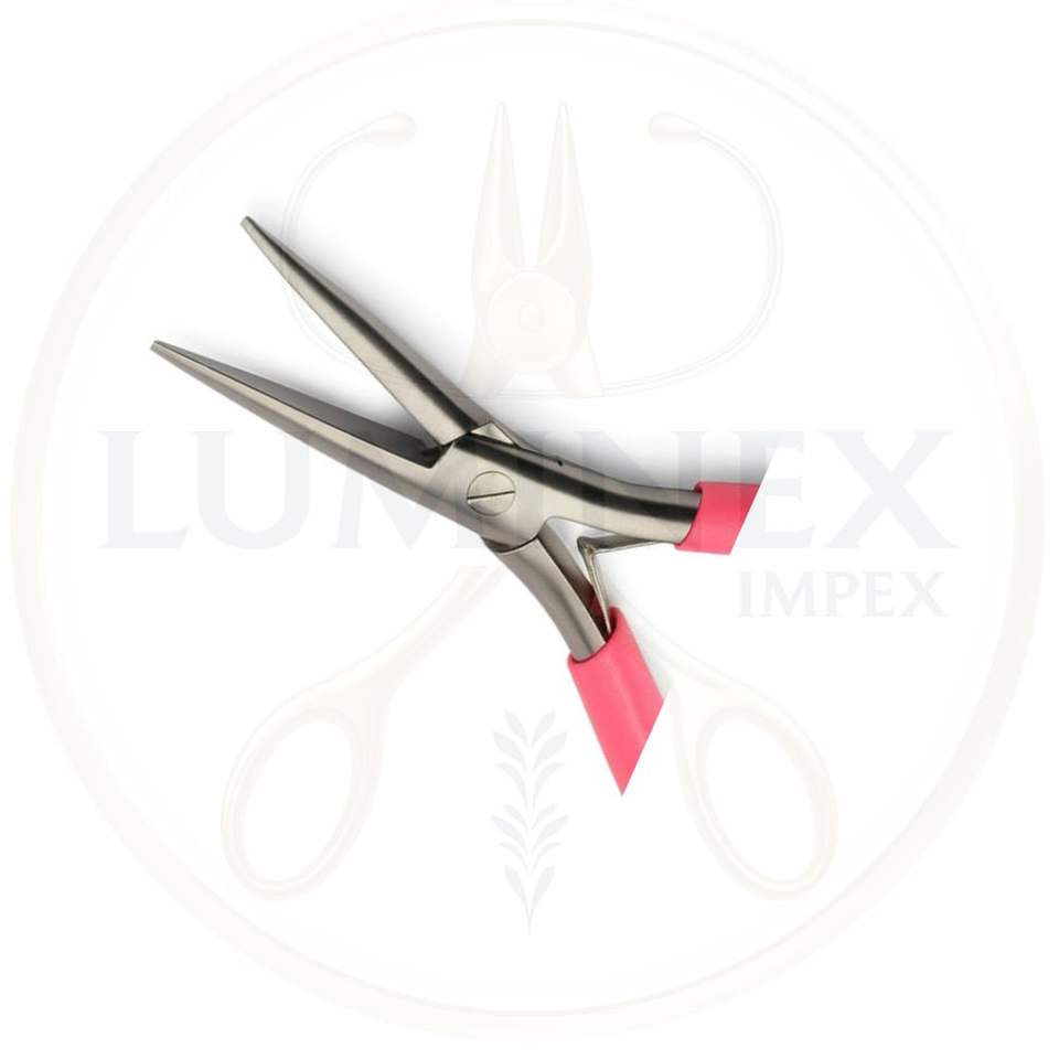 Luminex impex คีมทำเครื่องประดับจมูกยาว (ที่จับสีชมพู) (ห่วงโซ่จมูก/เข็มจมูก) สแตนเลสน้ำหนักเบา