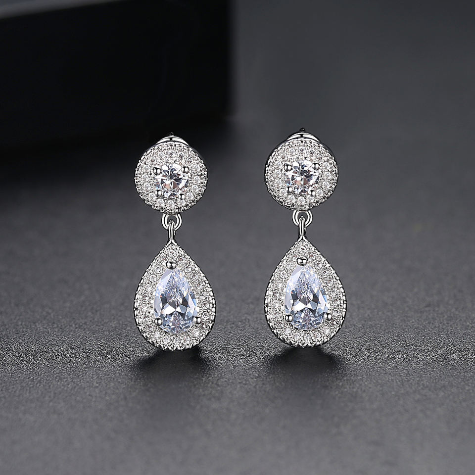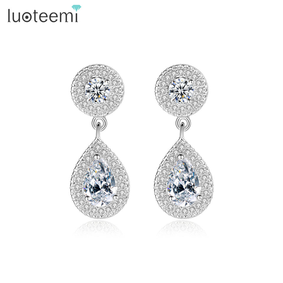 ต่างหูห้อยระย้าดีไซน์หรูหราประดับเพชรคิวบิกเซอร์โคเนียรูปหยดน้ำสำหรับงานแต่งงาน LUOTEEMI ขายส่งสต็อกพร้อมส่ง ล่าสุด