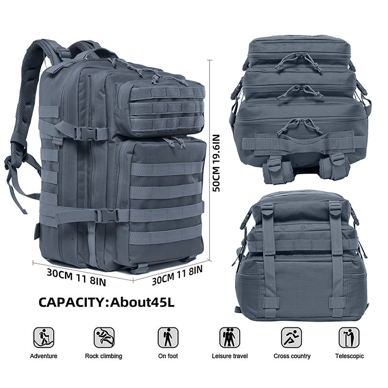 กระเป๋าเป้สะพายหลัง LUPU ขนาด 45 ลิตร สำหรับกิจกรรมกลางแจ้ง กันน้ำ เหมาะสำหรับเดินป่าและเอาชีวิตรอด สีดำ
