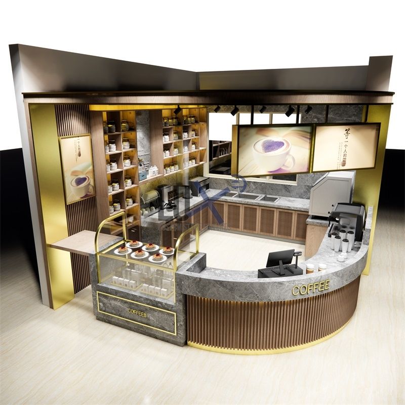 ออกแบบตกแต่งร้านกาแฟสุดพิเศษตามสั่ง ดีไซน์ตู้ขายกาแฟทันสมัยสำหรับตู้โชว์สินค้าแบบกำหนดเองในห้างสรรพสินค้ากลางแจ้ง