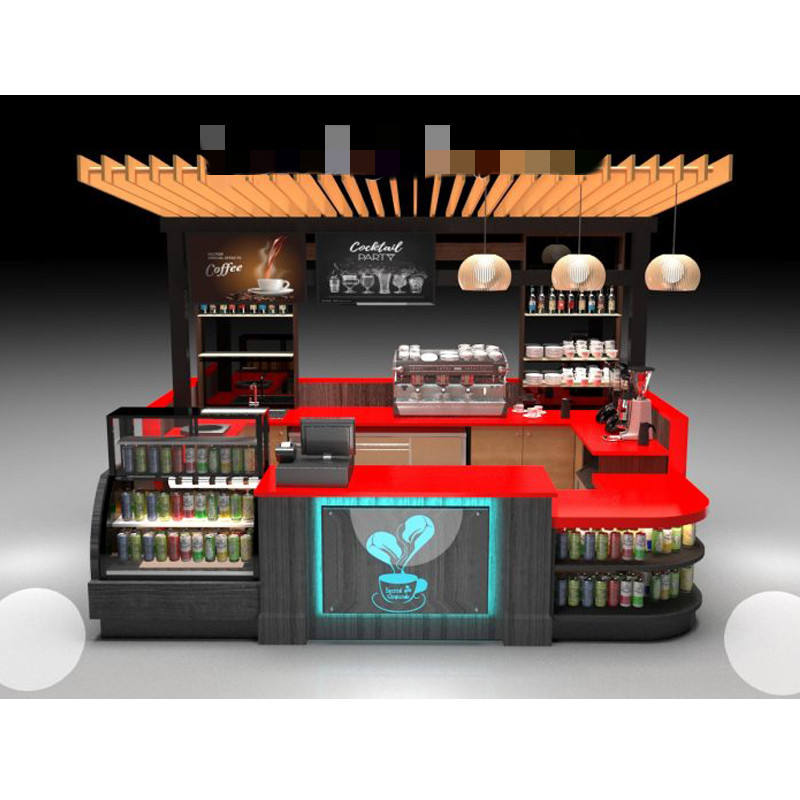 LUX Customized Wood Modern Creative Wood Coffee Bar Counter Display Sales Shopping Mall Mini Coffee Store Kiosk Design