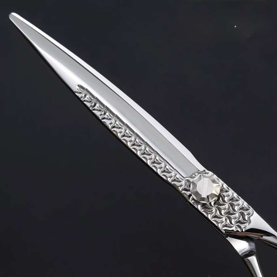 LUXE กรรไกรตัด6.0แบบมืออาชีพกรรไกรมีขอบเหล็กแบบญี่ปุ่นพร้อมสกรูปรับความตึงคริสตัลสำหรับช่างตัดผมและร้านเสริมสวย