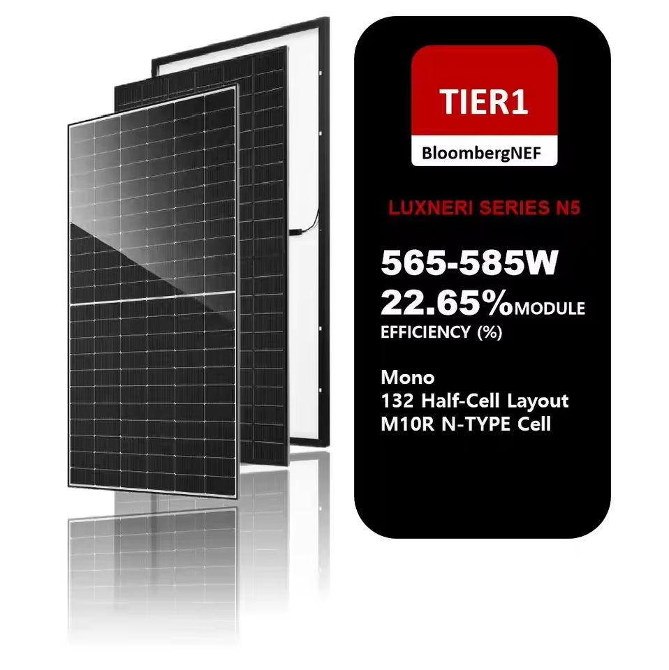 แผงโซลาร์เซลล์ LUXNERI Tier 1 LNVB 565-585M สีดำล้วน 132 ฮาล์ฟเซลล์ ชนิด N โมโน ประสิทธิภาพ 22.65% กำลังไฟ 565W-585W
