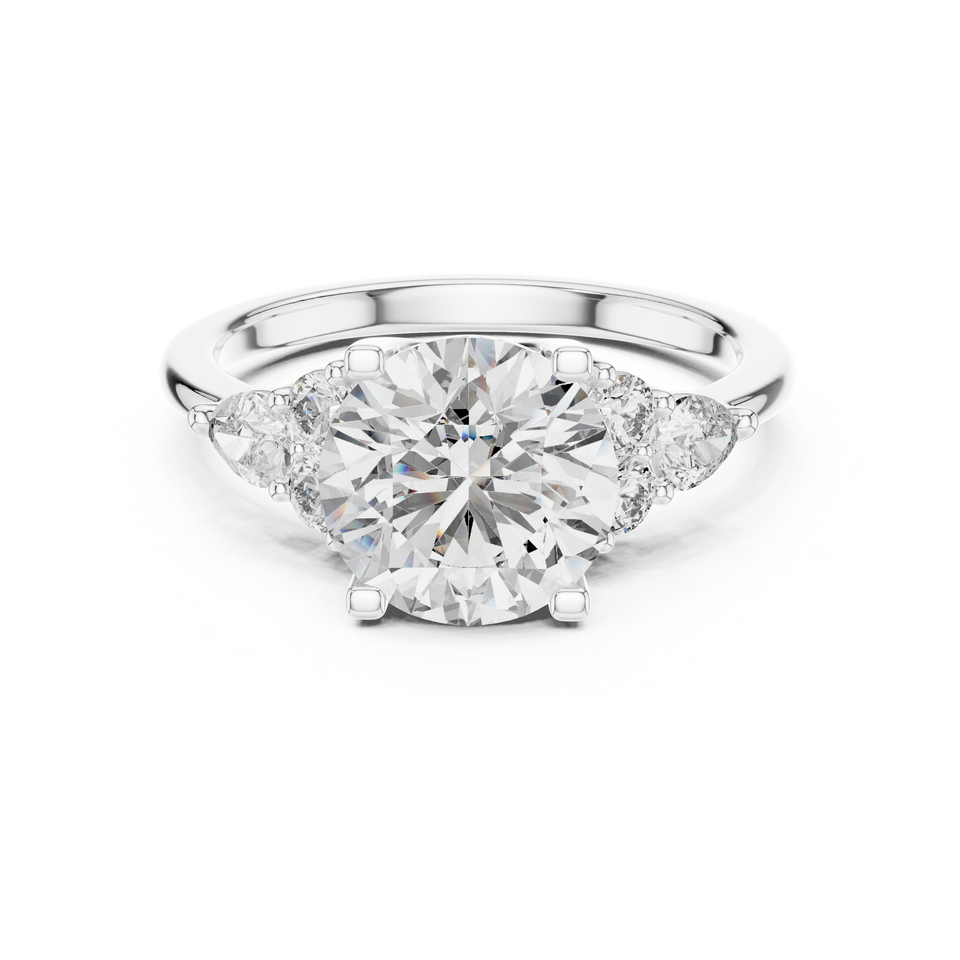เพชรทรงกลม 2.5 กะรัต คุณภาพสูง ผลิตในห้องปฏิบัติการ พร้อมเพชรข้าง 0.5 กะรัต ชุบโรเดียม ทองคำขาว 18 กะรัต เหมาะสำหรับสวมใส่ทุกวัน งานหมั้น งานแต่งงาน