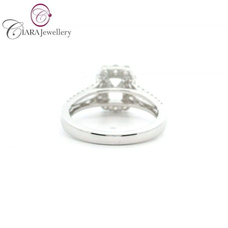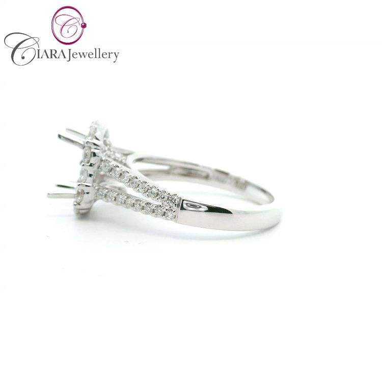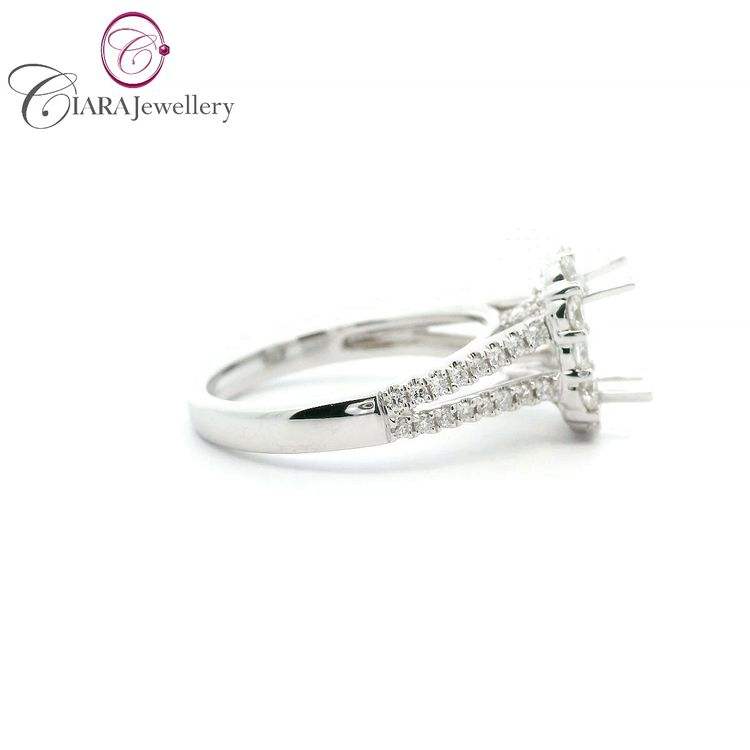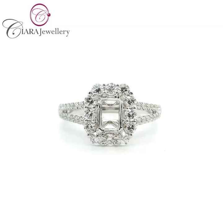 แหวนแต่งงานทองคำขาว 18K AU750 ประดับเพชรธรรมชาติทรงมรกต ขนาด 6.75x4.75 มม. ดีไซน์วงแหวนแยกแบบ Halo สไตล์คลาสสิคหรูหรา