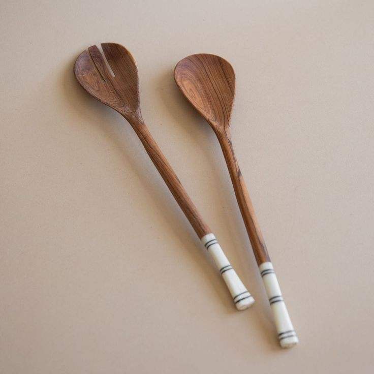 Wood Bone Salad Server Set