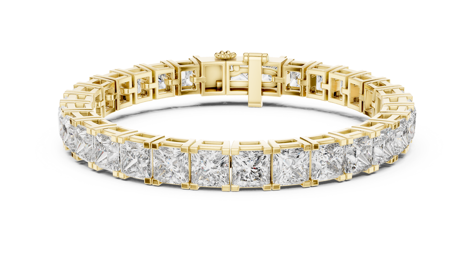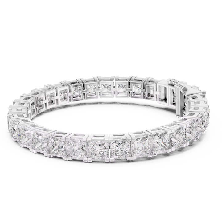 กำไลข้อมือ/กำไลข้อมือแบบเปิดสำหรับผู้หญิง ประดับเพชรทรงปรินเซสคัท ผลิตในห้องปฏิบัติการ คุณภาพสูง ชุบโรเดียม ทองคำแท้ 18K เหมาะสำหรับสวมใส่ทุกวัน งานแต่งงาน และงานหมั้น