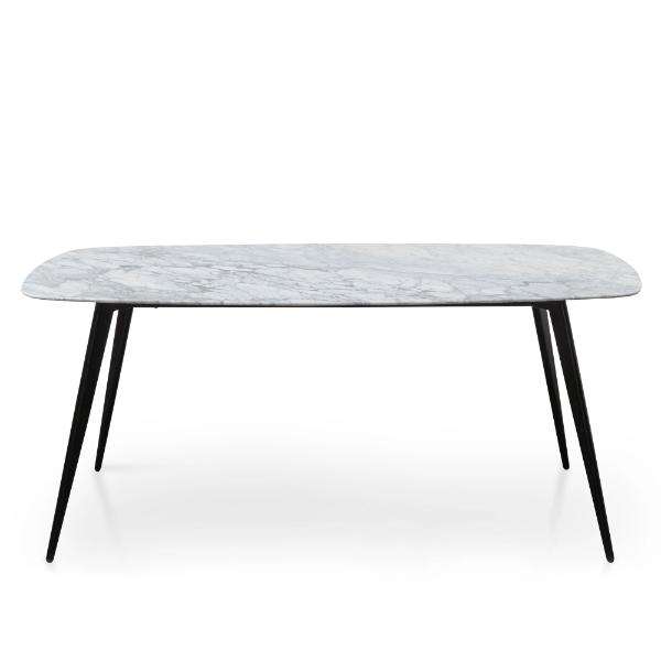 โต๊ะรับประทานอาหารหินอ่อนสุดหรูพร้อมขาเหล็กดีไซน์ใหม่ล่าสุดมีความทนทานสูงเฟอร์นิเจอร์ห้องรับประทานอาหาร