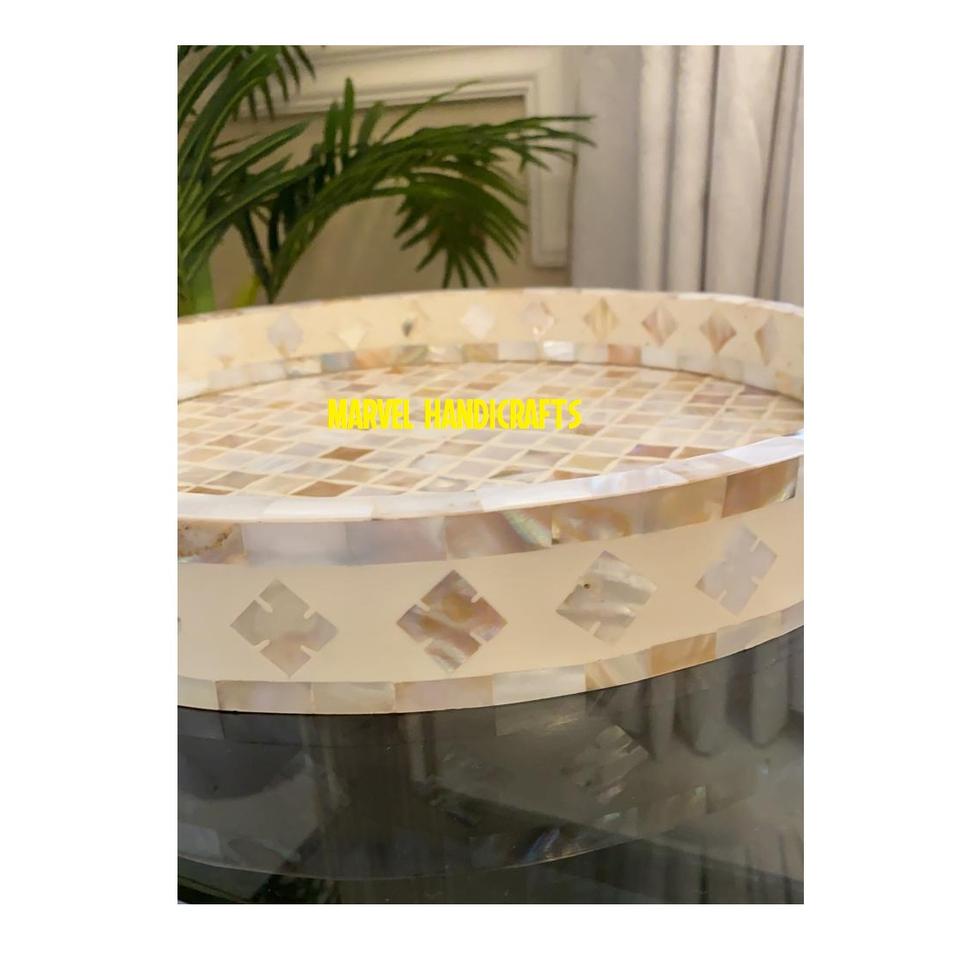 แม่ไข่มุกหรูหรางานฝีมือทำจากไม้ถาดเสิร์ฟสำหรับตกแต่งบ้าน,ถาดของขวัญเครื่องครัวถาดรอมฎอนอาหรับ