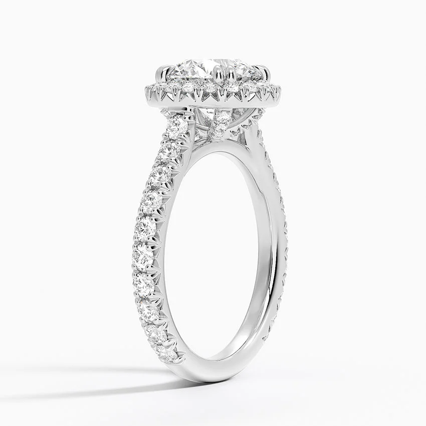 แหวนหมั้นเพชรมอยส์ซอไนต์ตัดหรูหรา925ฮาโลสีเงินสำหรับงานแต่งงานครบรอบปาร์ตี้ของขวัญเครื่องประดับ