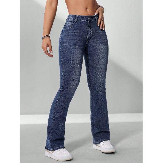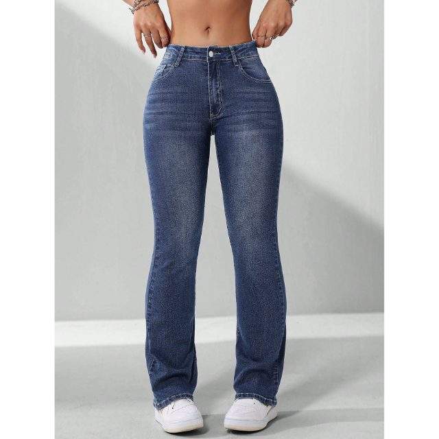 ข้อมูลจำเพาะ:High waist design for flattering fit., Bell bottom flared leg style., Premium quality denim fabric., Soft and comfortable feel., Stretch material for easy movement., Durable stitching for long wear., Stylish vintage inspired look., Suitable for casual and daily wear., Easy to pair with tops and footwear., Available in multiple sizes and washes.
