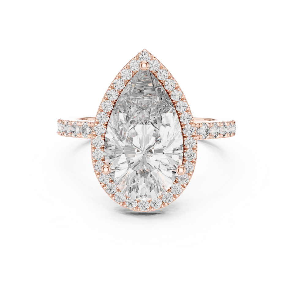 แหวนเพชรทรงลูกแพร์ 4 กะรัต สำหรับผู้หญิง ดีไซน์หรูหรา ประดับเพชรแบบฮาโล เพฟเซ็ต ทองคำ 18K ชุบโรเดียม รับรองโดย IGI เหมาะสำหรับใส่ทุกวัน/งานเลี้ยง