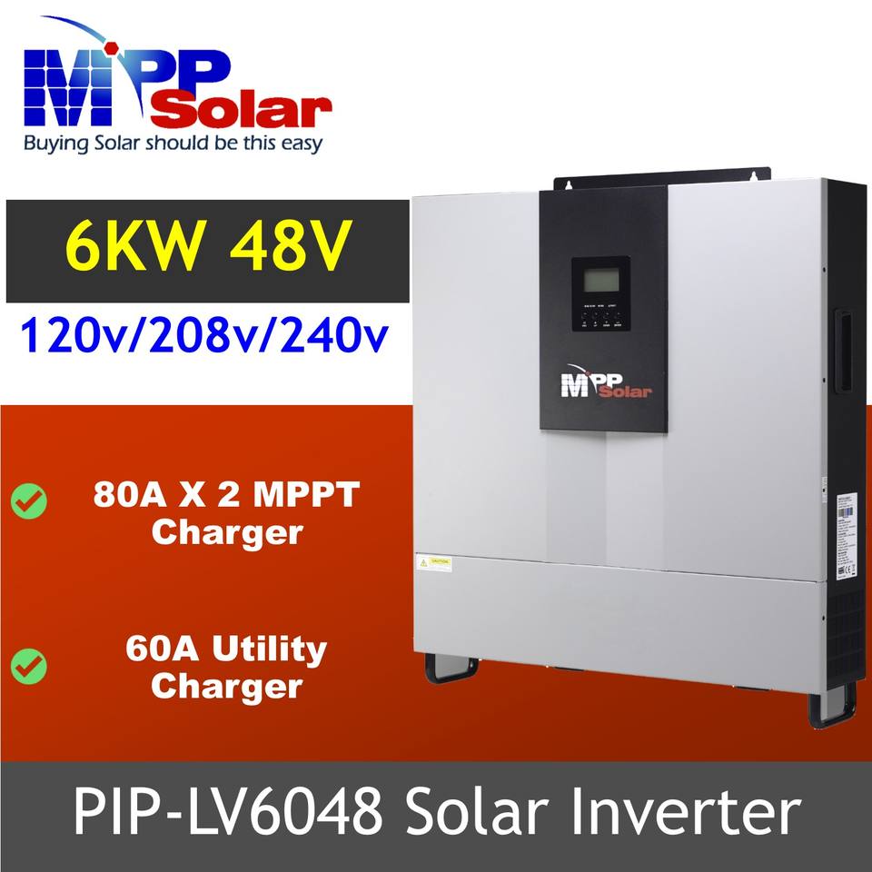 อินเวอร์เตอร์พลังงานแสงอาทิตย์ LV6048 6000w 48v แบบแยกเฟส 120v/240v + เครื่องชาร์จ MPPT + แผงโซลาร์เซลล์ 8kw + ระบบขนาน 6kw 110v/220v สินค้าในสหรัฐอเมริกา จัดส่งฟรี