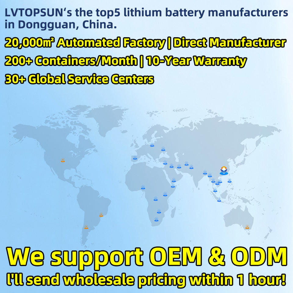 Lvtopsun แบตเตอรี่ลิเธียมไอออนพลังงานแสงอาทิตย์ LIFEPO4 4.8kWh 100Ah 48V สำหรับจัดเก็บในบ้านแบตเตอรี่ติดผนังและชั้นวาง