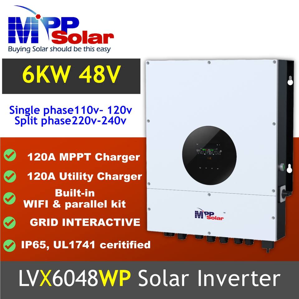 อินเวอร์เตอร์พลังงานแสงอาทิตย์แบบไฮบริด LVX6048WP 6000w 48v แบบแยกเฟส 110V 220Vac พร้อมระบบชาร์จพลังงานแสงอาทิตย์ MPPT 120A รองรับแรงดันไฟฟ้าขาเข้าสูงสุด 600 Vdc ได้รับการรับรองมาตรฐาน UL1741