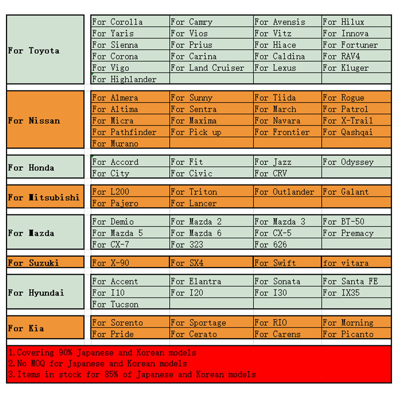 สำหรับรถยนต์ญี่ปุ่นและเกาหลีรุ่น รถ