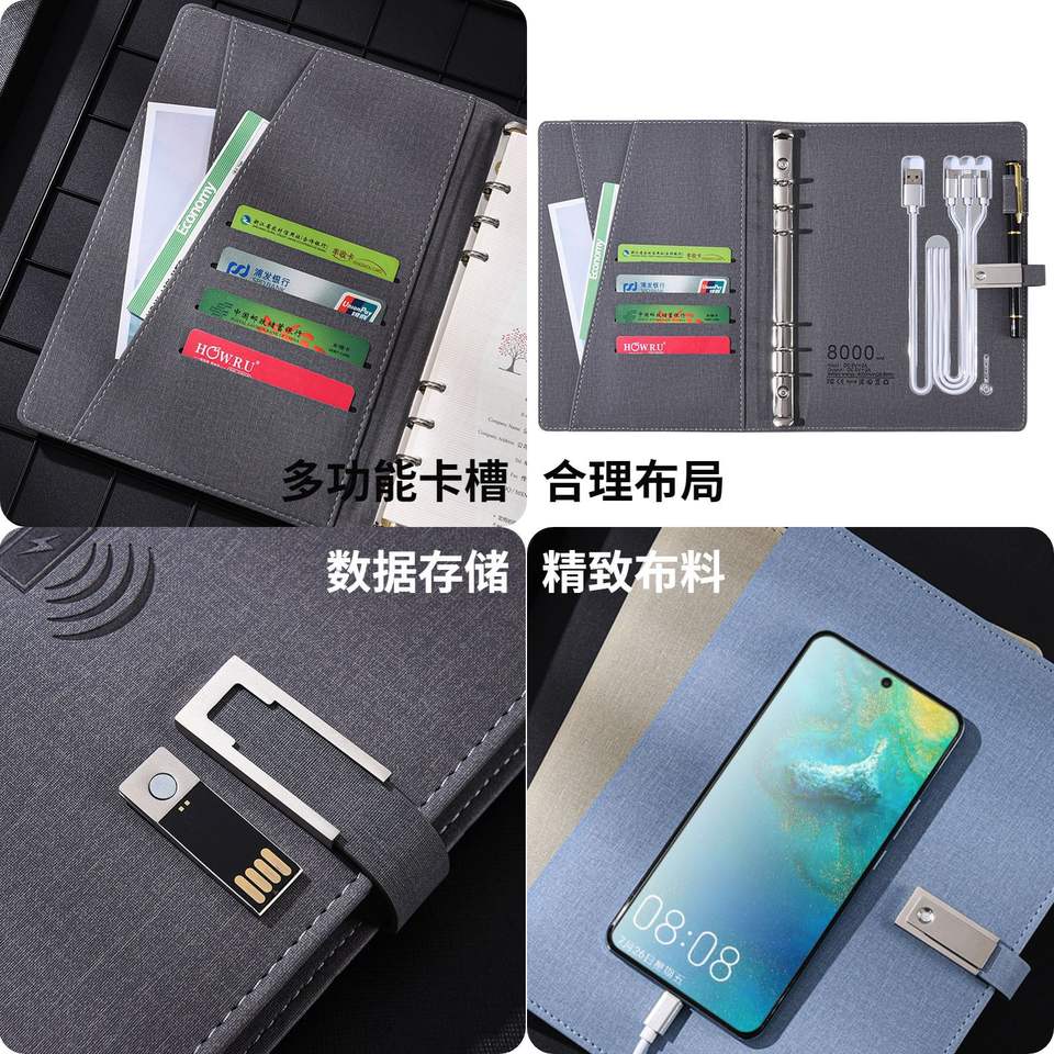 สมุดบันทึกธุรกิจแบบชาร์จไฟได้ LX23008 ปกผ้าแบบถอดได้ พร้อมระบบชาร์จไร้สาย สมุดโน้ตพกพาสำหรับสำนักงาน