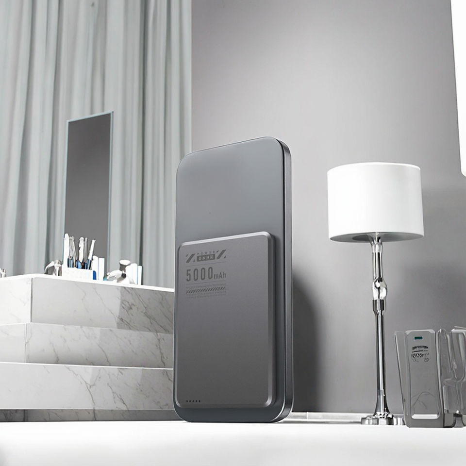 พาวเวอร์แบงค์แม่เหล็กไร้สาย LX6 อลูมิเนียมอัลลอยด์ ตัวเครื่องบางเฉียบ 6.5 มม. ชาร์จเร็ว 15W รองรับ PD20W แบบมีสาย ความจุ 5000mAh/10000mAh