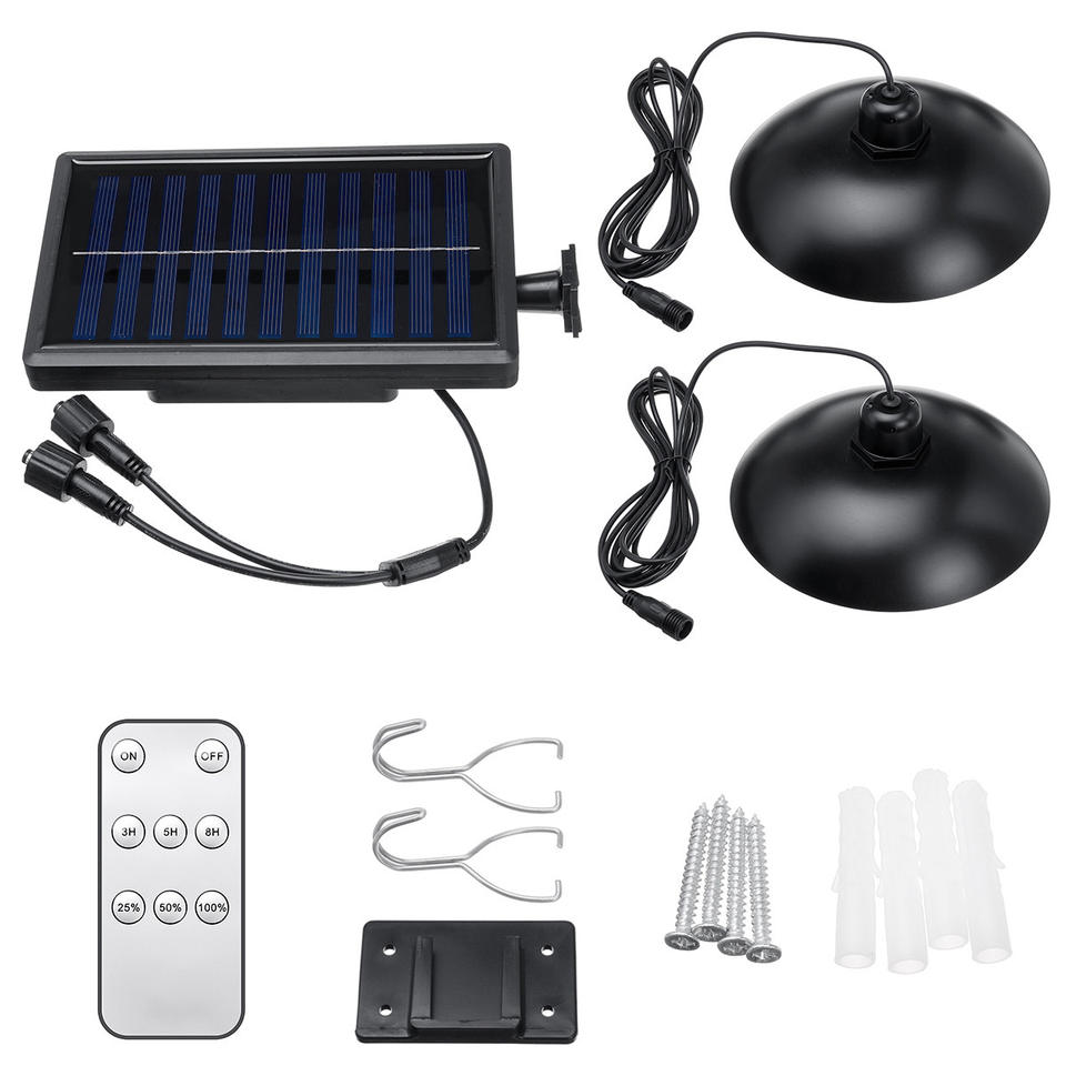 โคมไฟแขวนโซลาร์เซลล์ LY 5W แบบสองหัว LED กันน้ำสำหรับภายนอกอาคาร พร้อมรีโมทคอนโทรล สำหรับสวน ลานบ้าน และระเบียง