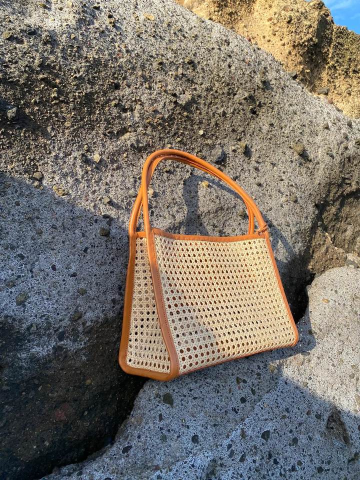 Lyle กระเป๋าหวายสไตล์ฤดูร้อน, กระเป๋าทรงถังกระเป๋าบาหลีมีผ้าใบซับในกระเป๋าถือชายหาดสำหรับสุภาพสตรี