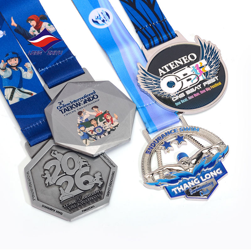LZY ผลิตเหรียญรางวัลกีฬาแบบกำหนดเอง เหรียญทอง เงิน ทองแดง เคลือบอ่อนแบบหล่อขึ้นรูป 3 มิติ พร้อมสลักชื่อได้