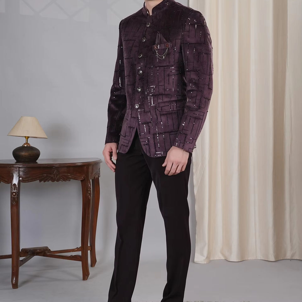 La Scoot ชุดสูทปักลายสำหรับผู้ชาย, ชุดเสื้อผ้า2ชิ้นผ้าโพลีเอสเตอร์ผ้าวิสคอปกตั้งผ้าวิสคอปกกางเกงทรงแบนราบยาวปกติ