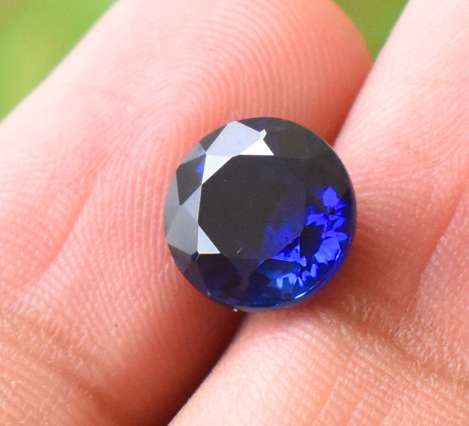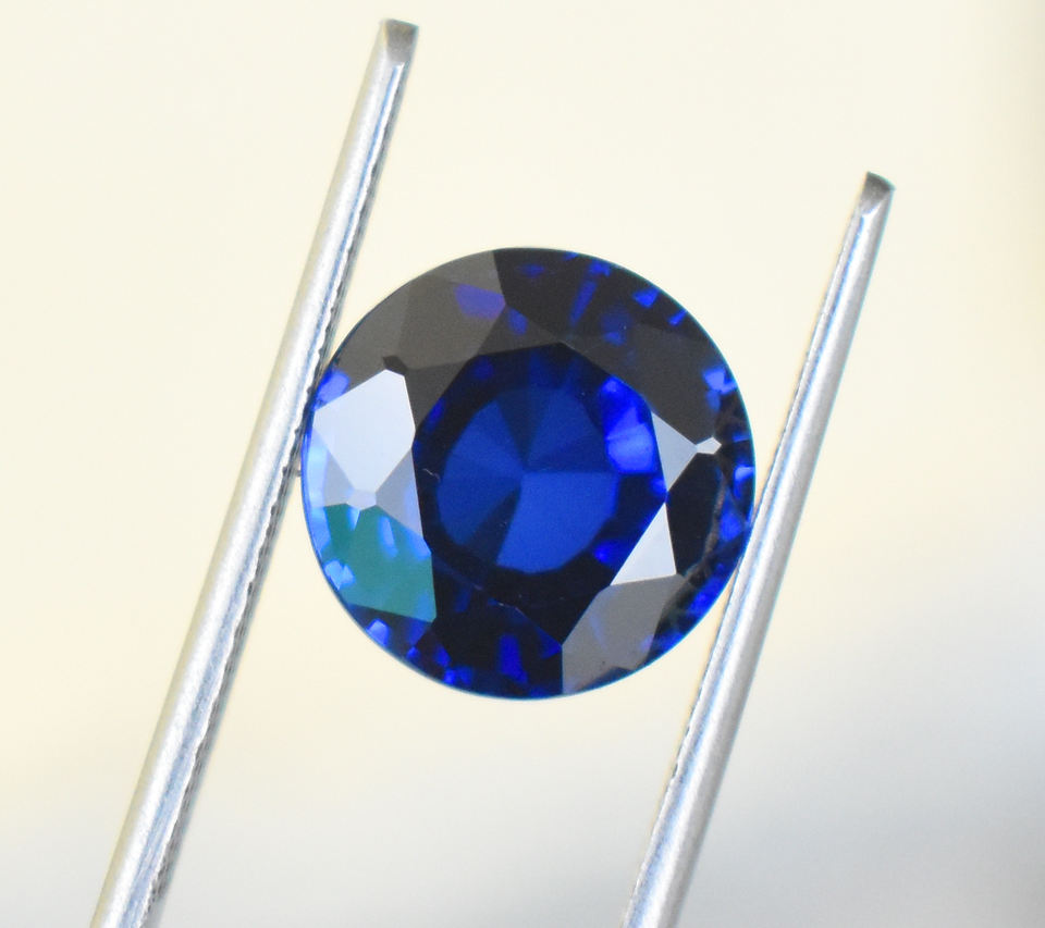 พลอยแซฟไฟร์สีฟ้าตัดกลมอัญมณีหลวมขนาด3มม. ถึง6มม. สำหรับเครื่องเพชรพลอยในห้องปฏิบัติการ
