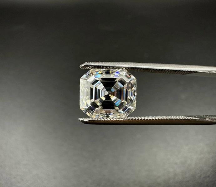 พลอยมอยส์ซาไนต์ทรงแอสเชอร์สีขาว DEF VVS ผลิตในห้องปฏิบัติการ เปลี่ยนสีได้/มีประกายไฟ รับรองโดยบุคคลที่สาม มีหลายขนาดให้เลือก