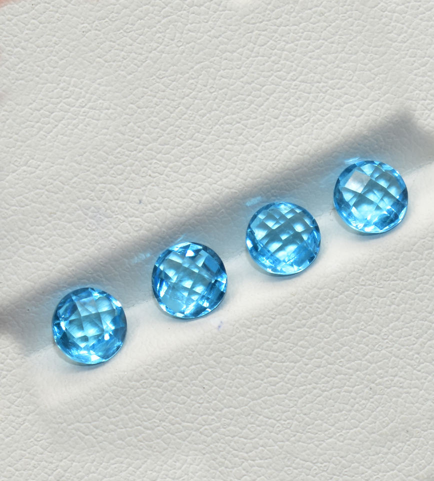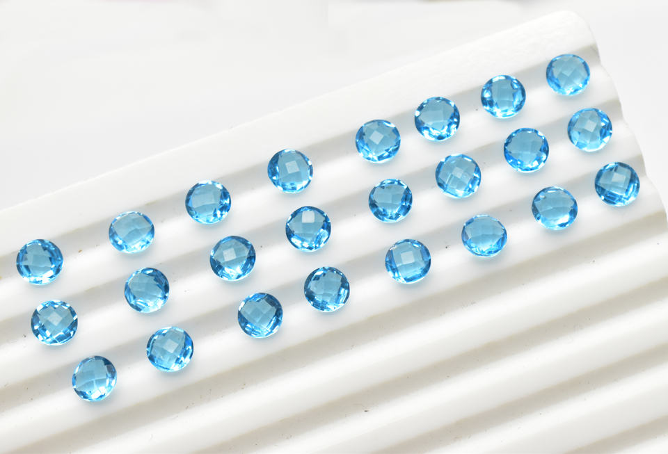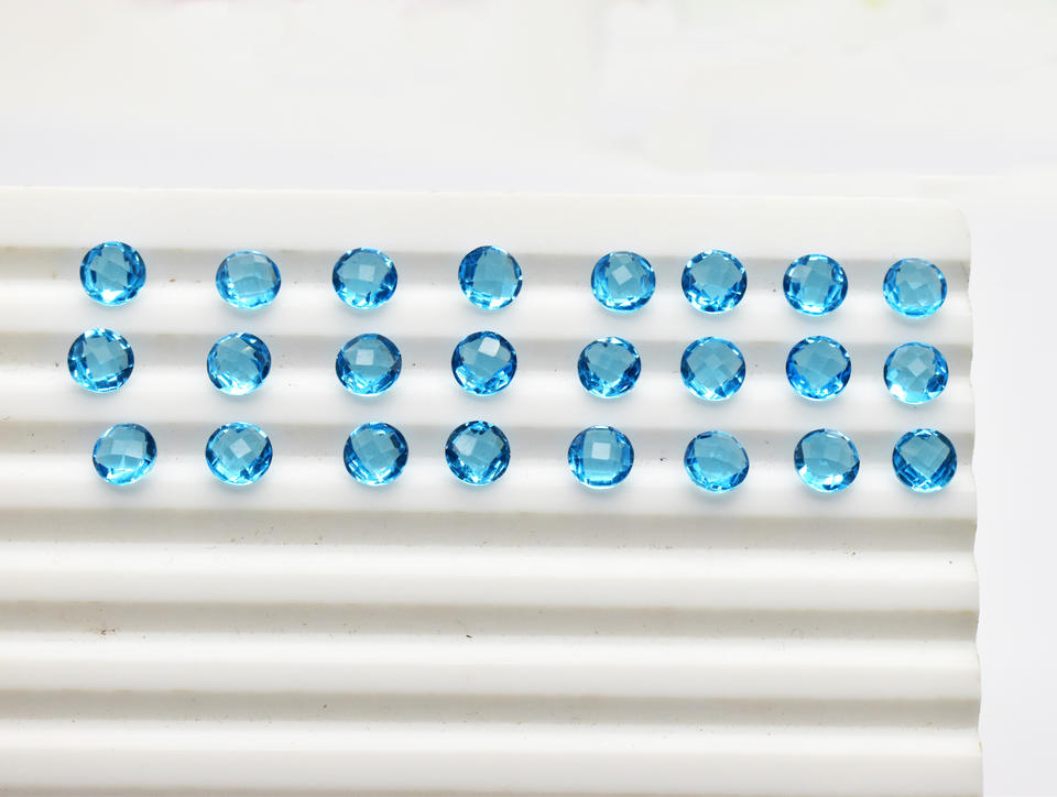 หินควอทซ์เหลี่ยมเพชรพลอยบุษราคัมสีฟ้าแบบกลมลายตารางตัดขนาด3มม. 20มม. มีหลายขนาด