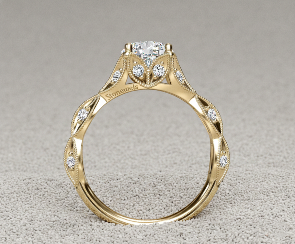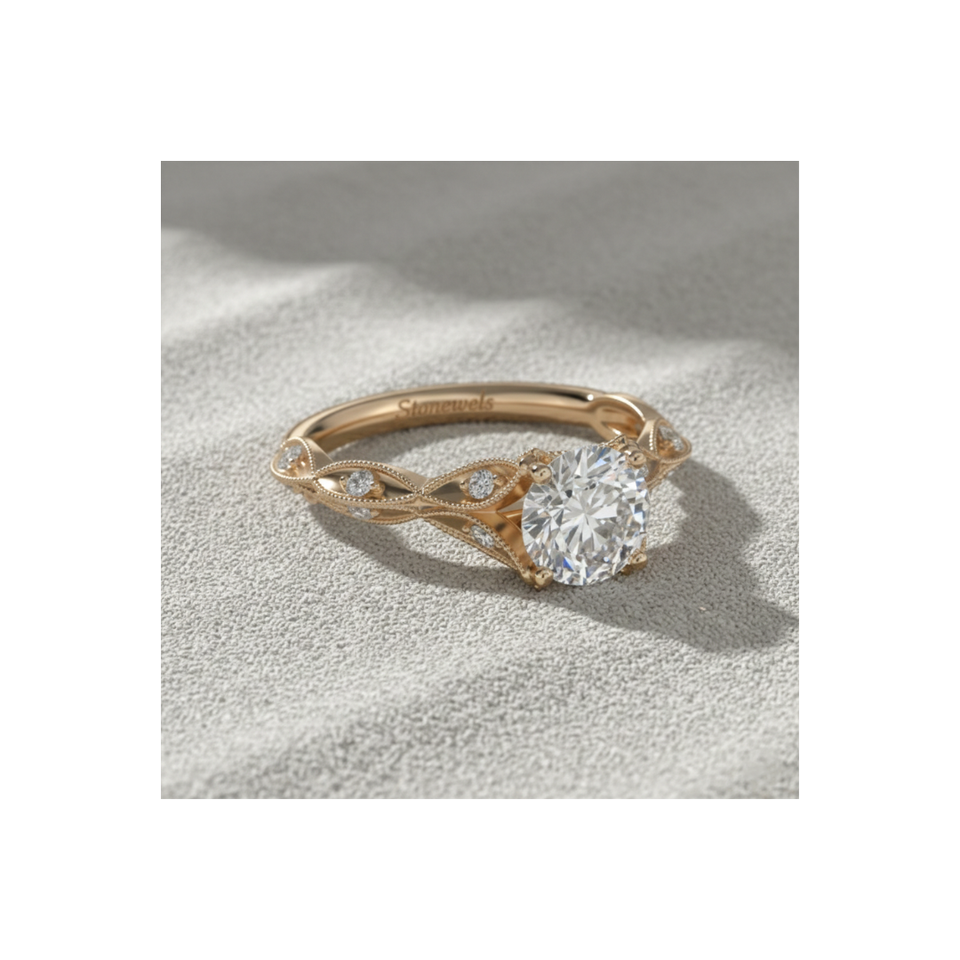 แหวนหมั้นเพชรสร้างในห้องปฏิบัติการ ดีไซน์วินเทจแบบมิลเกรน ทรงนาเวตต์ ตัดทรงกลม แหวนทองสำหรับเจ้าสาว โรงงานผลิตเครื่องประดับแบบ OEM ODM
