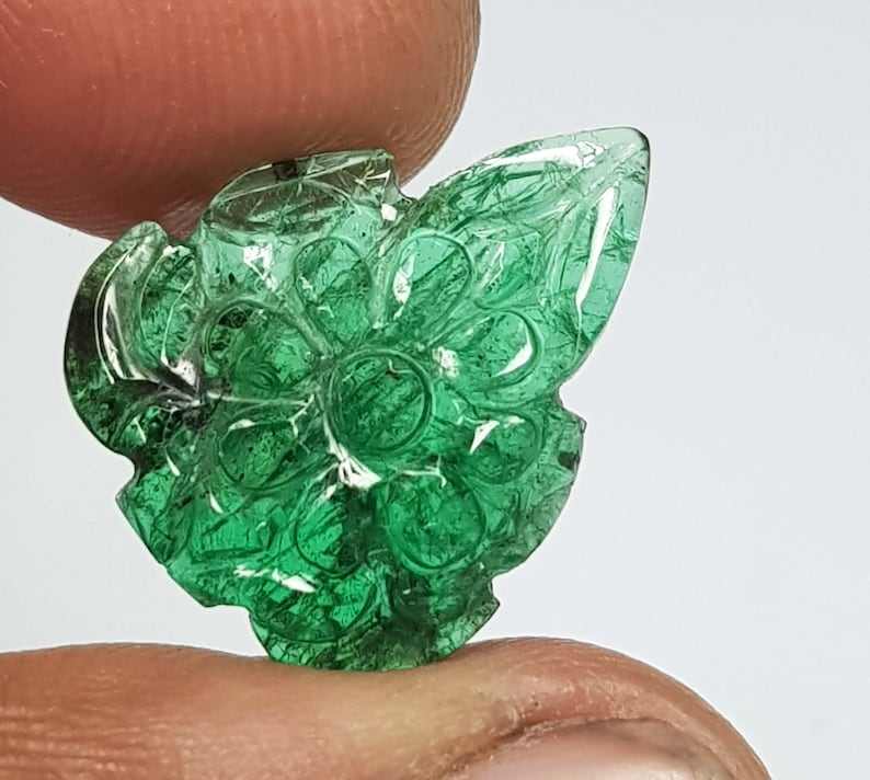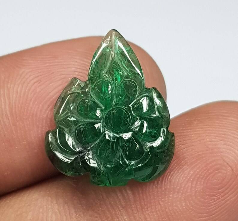 Keyword:Expansive Leaf Emerald Carved Gemstone Mughal Art Bu Zubeda Gems