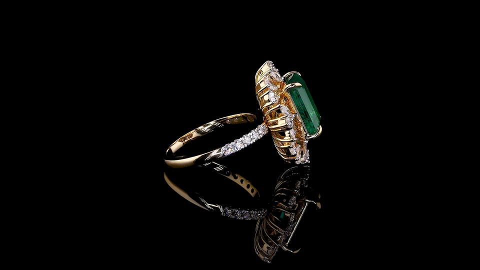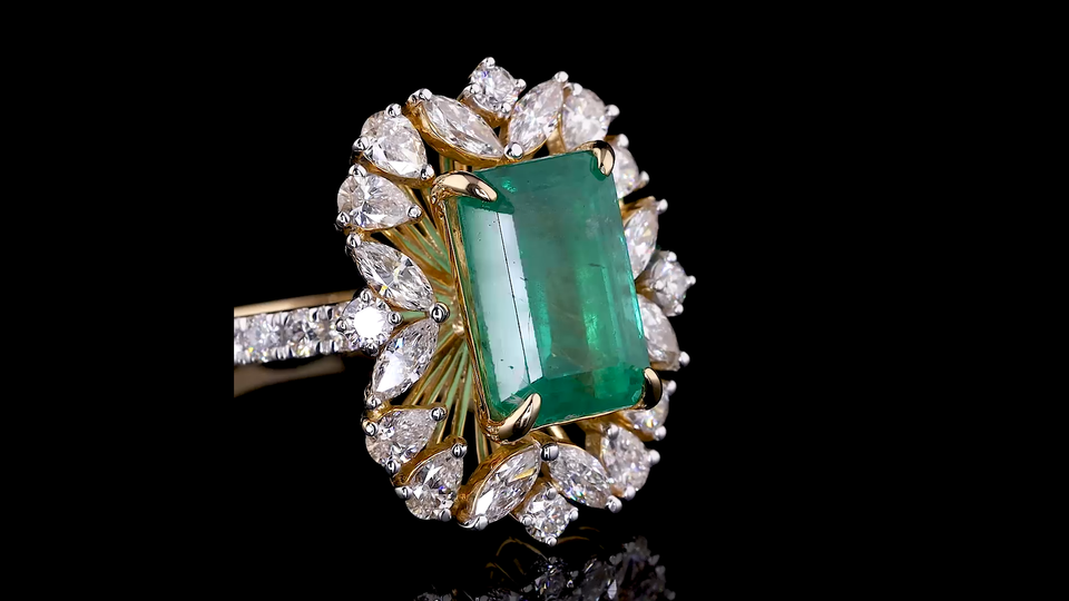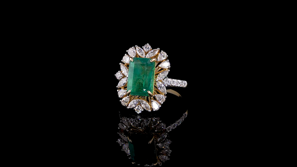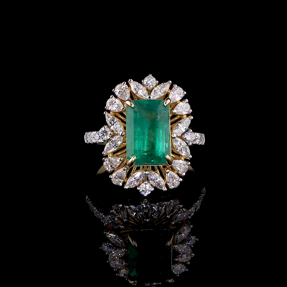 Lab Created Green Emerald Fancy Ring with Pear and Round Lab Grown Diamond | Wedding, Party & Gift Ring