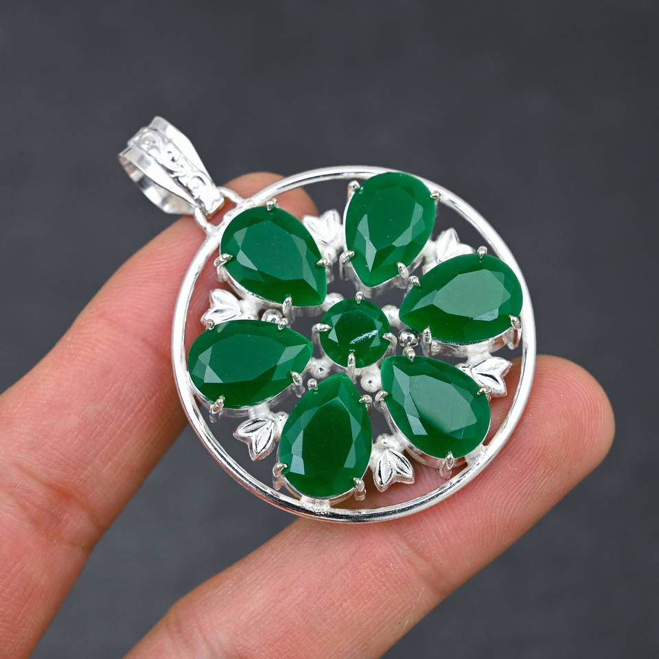 จี้พลอยโอนิกซ์สีเขียวสำหรับผู้หญิงจี้เงินสเตอร์ลิงโบฮีเมียนสำหรับงานแต่งงานงานหมั้น