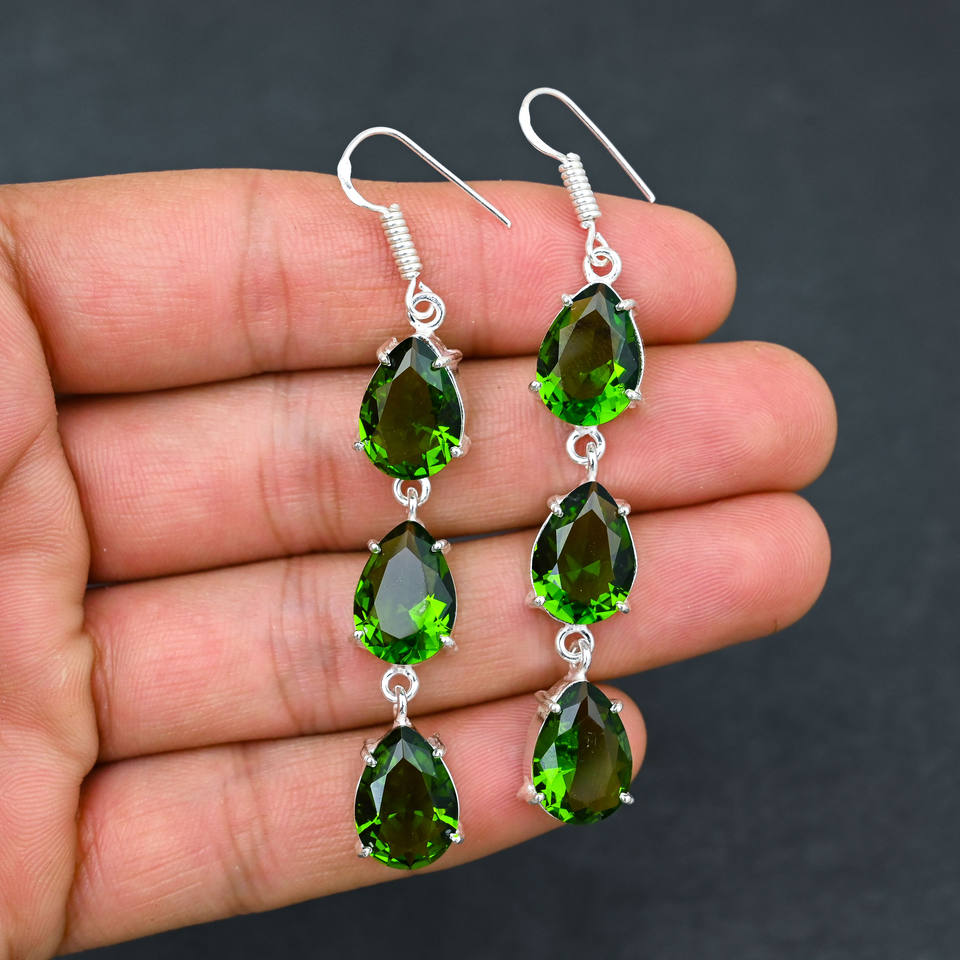 ต่างหูเพชรเพอริดอทสีเขียวขนาด10X14มม. ทรงลูกแพร์ได้มาตรฐาน IGI ได้รับการรับรองจากเงินสเตอร์ลิง1.90ของขวัญสำหรับงานเลี้ยง