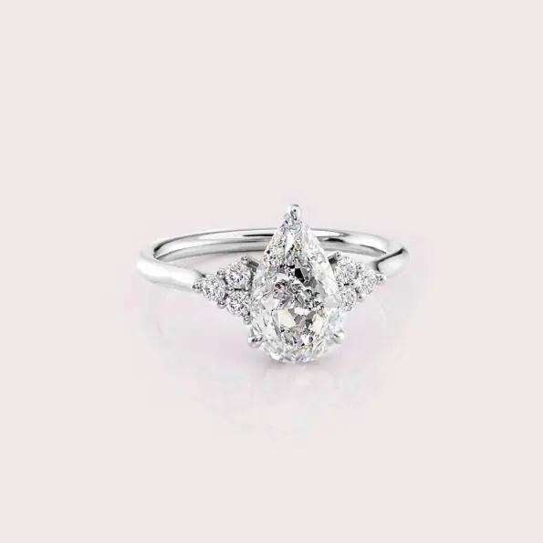 แหวนเพชรรูปทรงลูกแพร์ที่สร้างขึ้นในห้องปฏิบัติการ ได้รับการรับรองจาก IGI ตัวเรือนทองคำขาว/ทองคำเหลือง/ทองคำชมพู 18KT