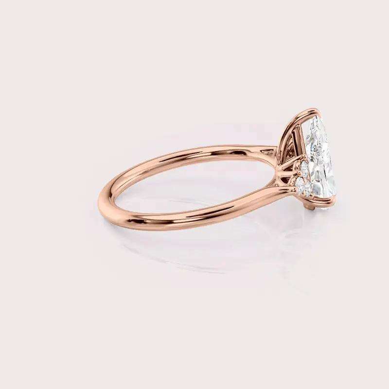 แหวนเพชรรูปทรงลูกแพร์ที่สร้างขึ้นในห้องปฏิบัติการ ได้รับการรับรองจาก IGI ตัวเรือนทองคำขาว/ทองคำเหลือง/ทองคำชมพู 9KT