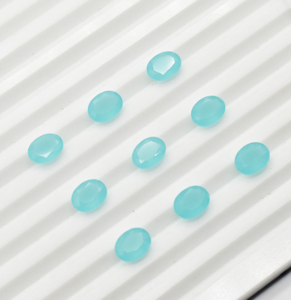 หินอัญมณีสีฟ้าไดอะมารีนแบบหลวมที่ผ่านการเจียระไนแบบวงรีสีฟ้า9X7มม. สำหรับทำเครื่องประดับ