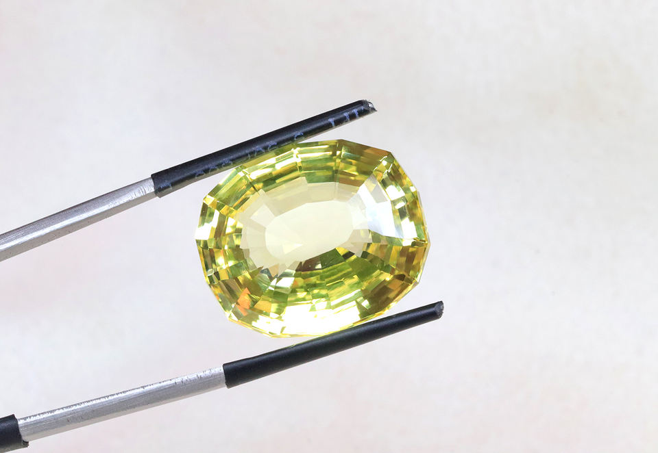 หินแซฟไฟร์สีเหลืองเจียระไนรูปวงรีหินสังเคราะห์แซฟไฟร์สีเหลืองเจียระไนแบบแฟนซีทำจากแลป