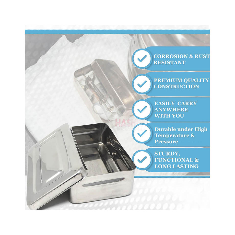 กล่องฆ่าเชื้อสแตนเลสสำหรับห้องปฏิบัติการทันตกรรม กล่องจัดระเบียบเครื่องมือ อุปกรณ์จัดเก็บเครื่องประดับ ถาดเก็บของ สามารถนึ่งฆ่าเชื้อได้ อุปกรณ์ทางการแพทย์สำหรับคลินิกศัลยกรรม