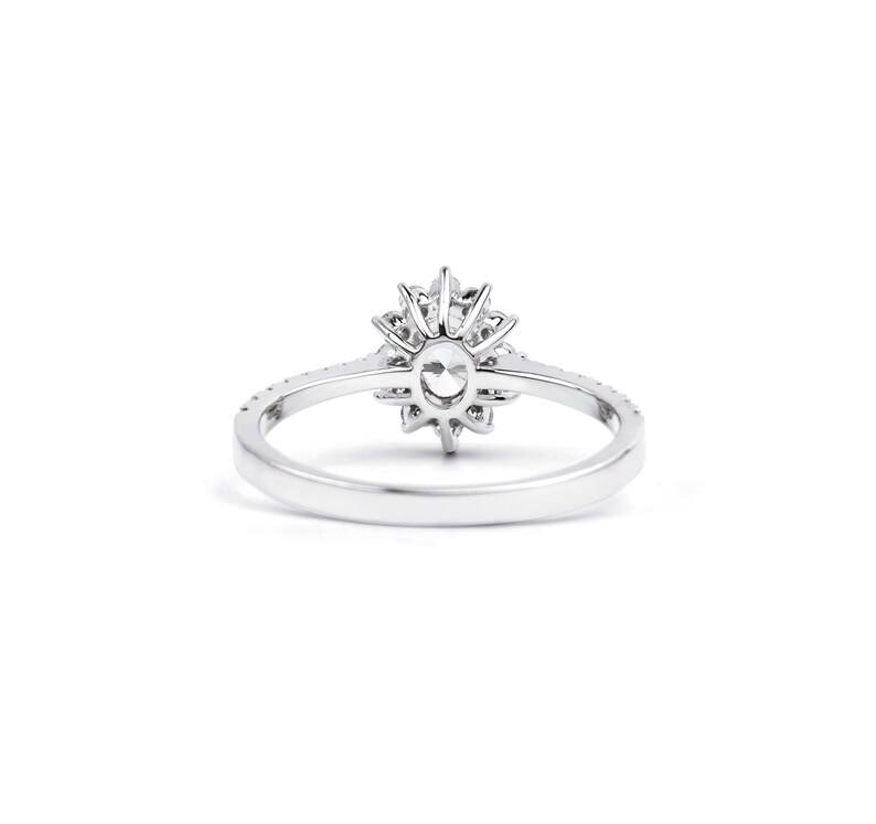 แหวนหมั้นเพชรทรงรีประดับเพชรแบบวงแหวน ดีไซน์หรูหรา แหวนเพชรรูปดอกไม้ ทองคำขาว 14K 18K เงินแท้ 925 ขายส่ง