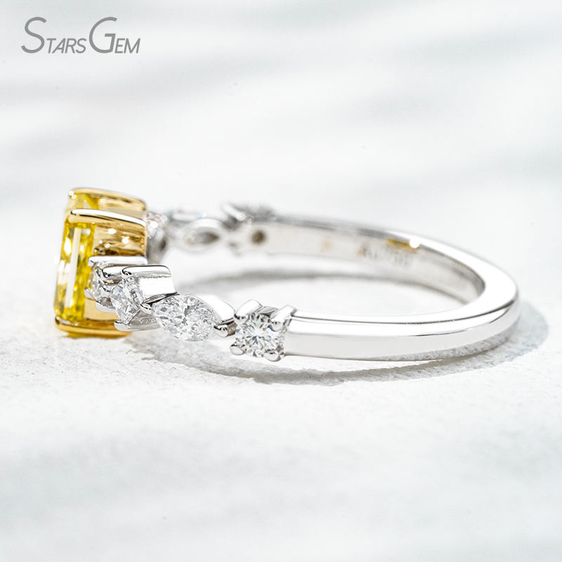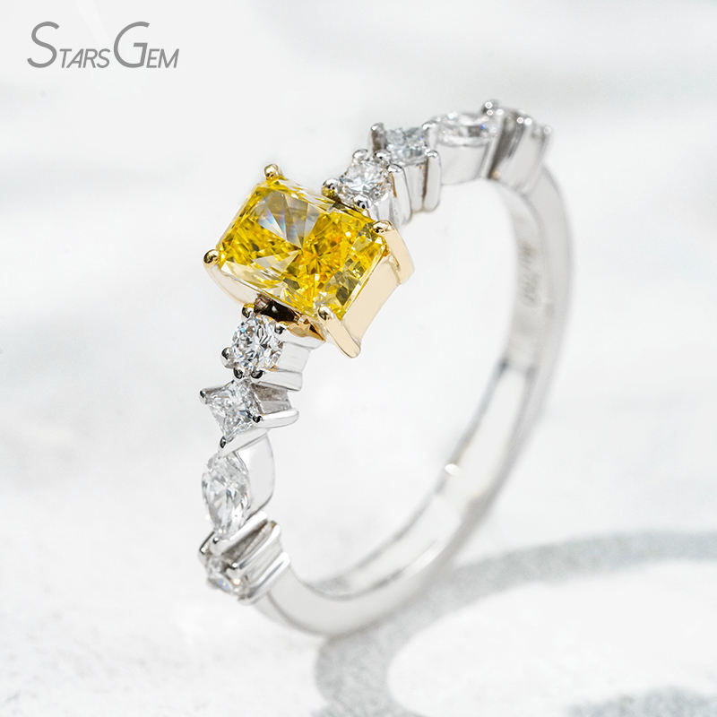 Lab Diamond Ring 18K White&Yellow Gold 4*5.5mm Radaint Cut Yellow Lab Diamond Round Cut Princess Shape Grown Diamond Gold Ring