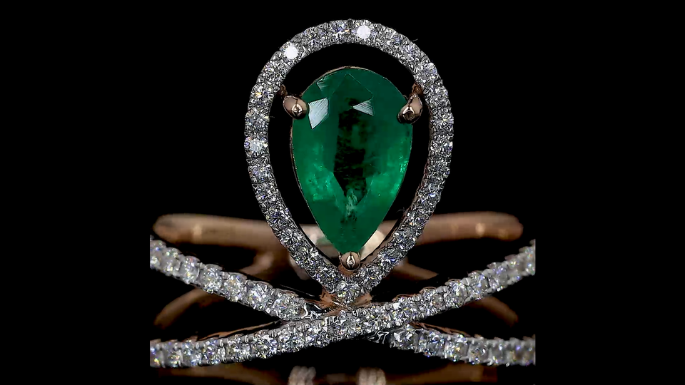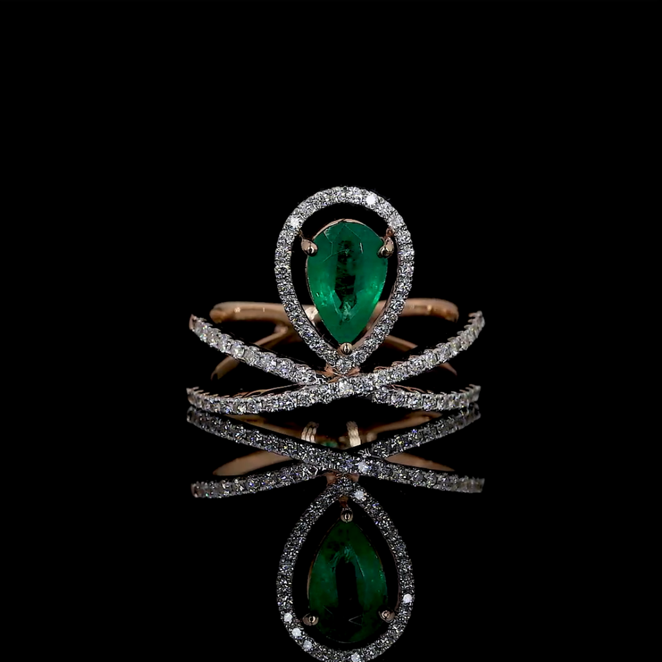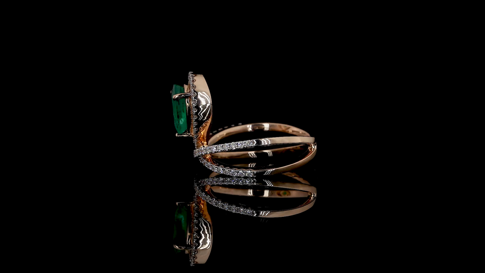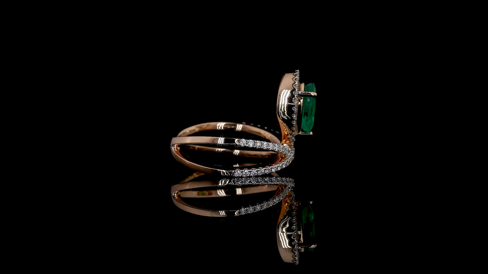 แหวนมรกตสีเขียวแล็บกรูว์น และเพชรทรงกลมที่เพาะเลี้ยงในห้องแล็บ | แหวนเพชรสำหรับใส่ทุกวันและใส่ทำงานที่ดูหรูหรา | รับผลิตแบบ OEM และ ODM