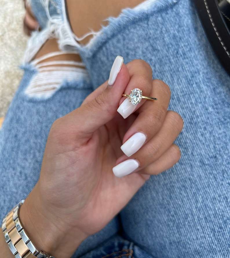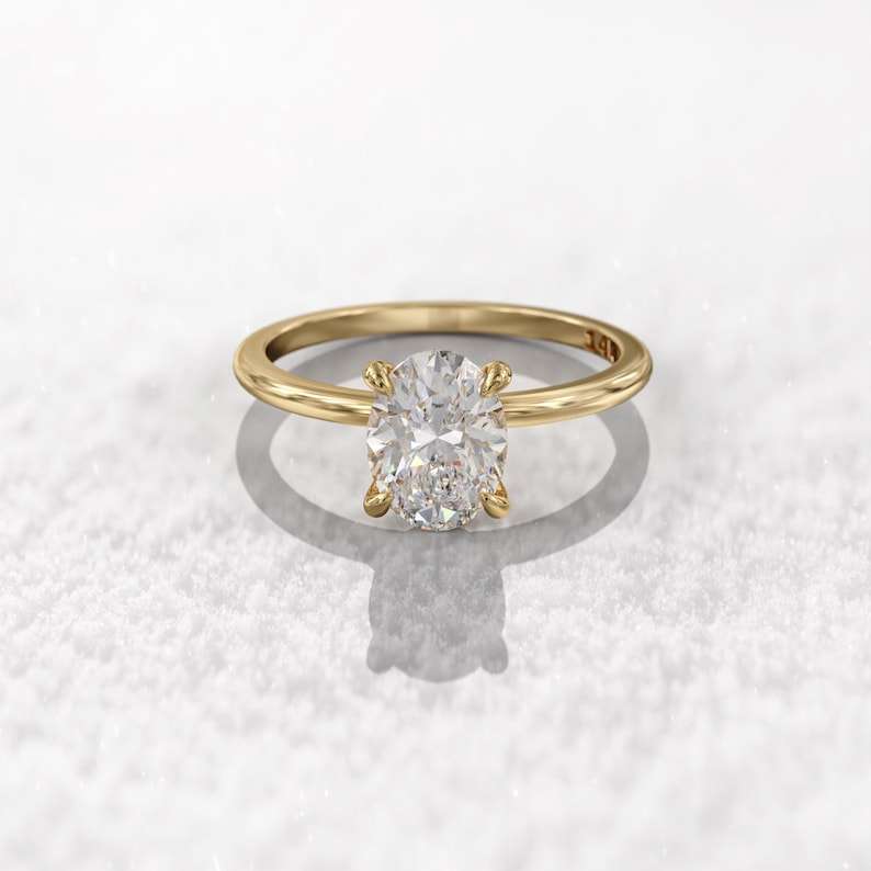 แหวนเพชรทรงรี 1.00 กะรัต เพาะเลี้ยงในห้องปฏิบัติการ สำหรับผู้หญิง ทองคำแท้ 14K เหมาะสำหรับงานแต่งงานหรืองานเลี้ยง