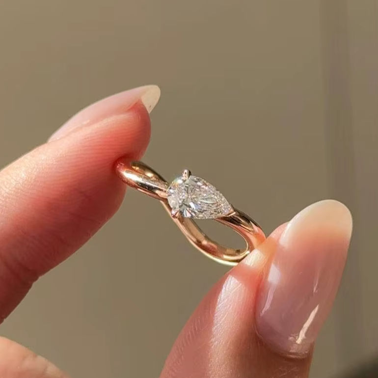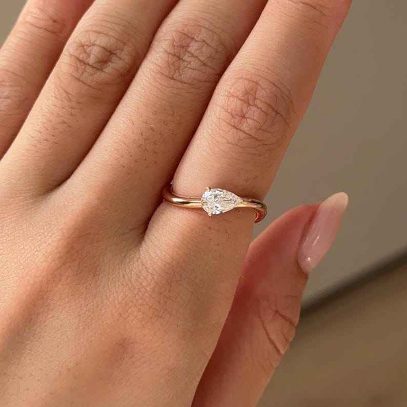 แหวนเพชรทรงลูกแพร์ 1.01 กะรัต แบบ East West เพาะเลี้ยงในห้องปฏิบัติการ สำหรับผู้หญิง ทองคำแท้ 14K แหวนสัญญาสำหรับคู่รัก