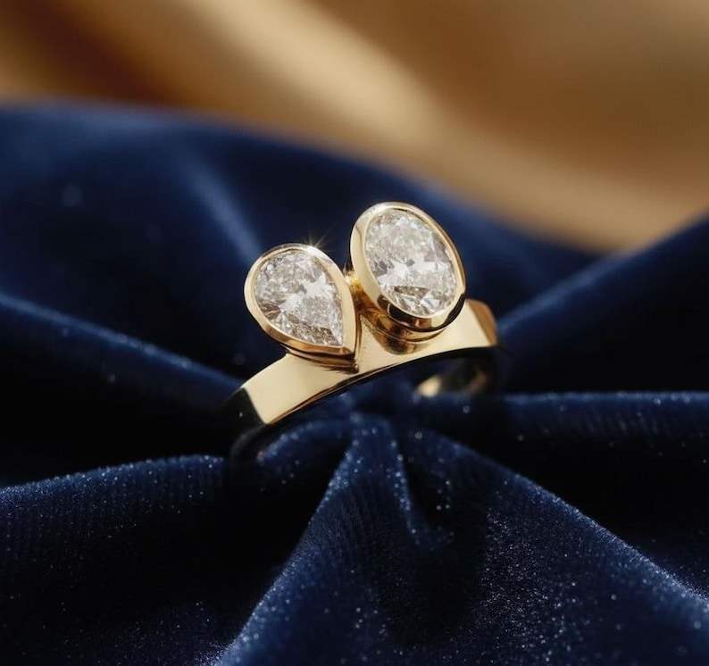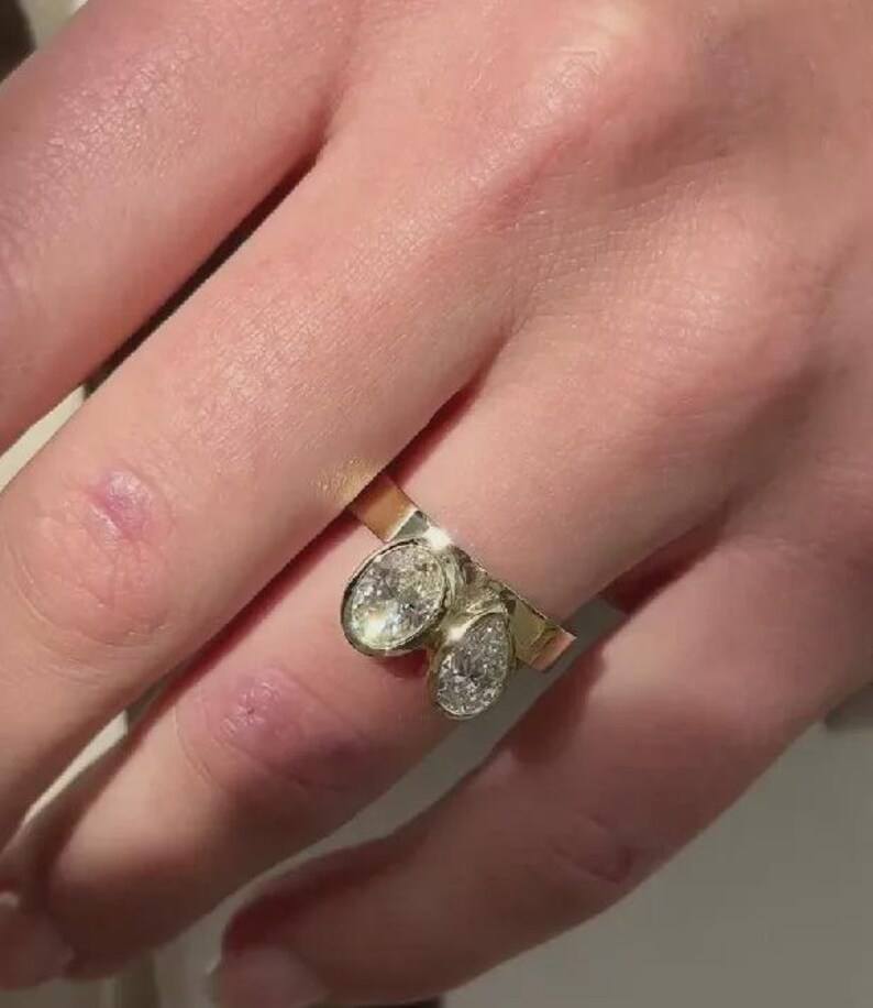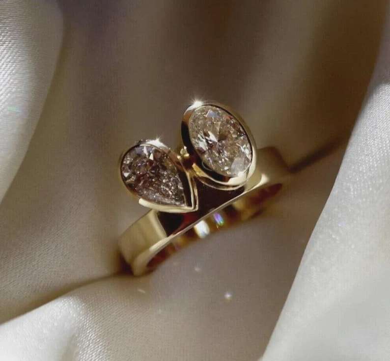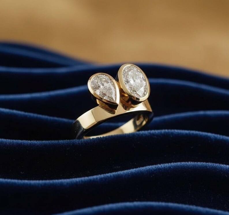 แหวนเพชรทรงลูกแพร์และทรงรี น้ำหนัก 1.01 กะรัต เพาะเลี้ยงในห้องปฏิบัติการ พร้อมสายแหวนแบบ Toi Moi สำหรับผู้หญิง ทองคำแท้ 14K ของขวัญเซอร์ไพรส์สำหรับงานปาร์ตี้สำหรับแฟนสาว