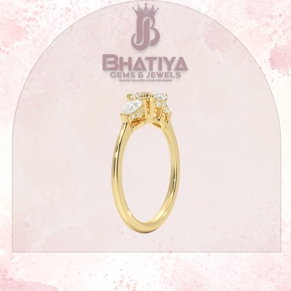 แหวนพลอยสามชิ้นสำหรับผู้หญิงแหวนหมั้นทำจากหินตรงกลางขนาด1-3 CT