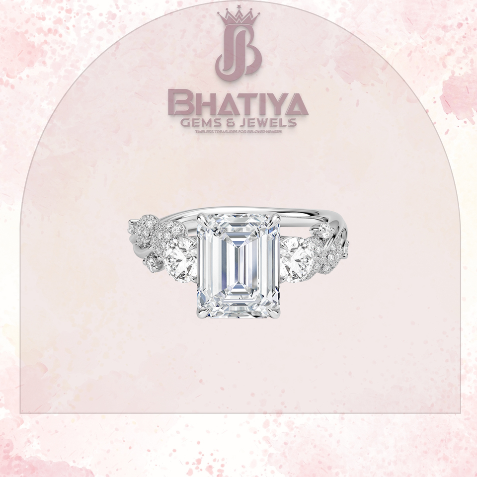 ของขวัญคริสต์มาสสำหรับผู้หญิงแหวนหมั้นเพชรเม็ดเดี่ยวแบบสามชิ้นลายมรกต1-3 CT สำหรับห้องปฏิบัติการ